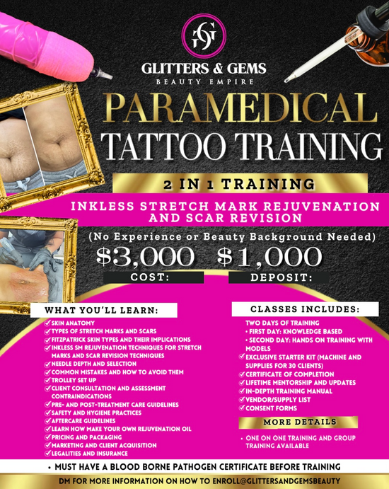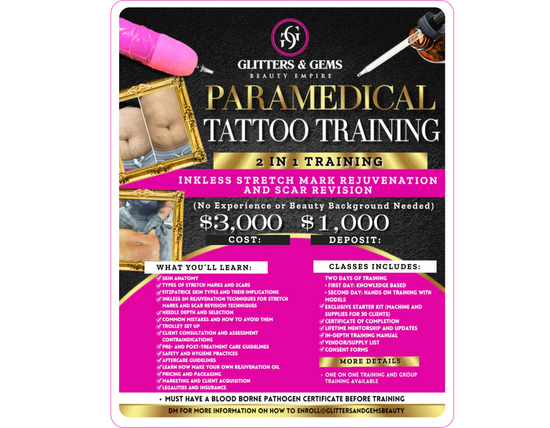 Are you passionate about helping clients achieve smoother, healthier-looking skin? Glitters and Gems Beauty Empire offers a specialized Inkless Stretch Mark Rejuvenation Training designed to equip you with advanced skills in stretch mark treatment.