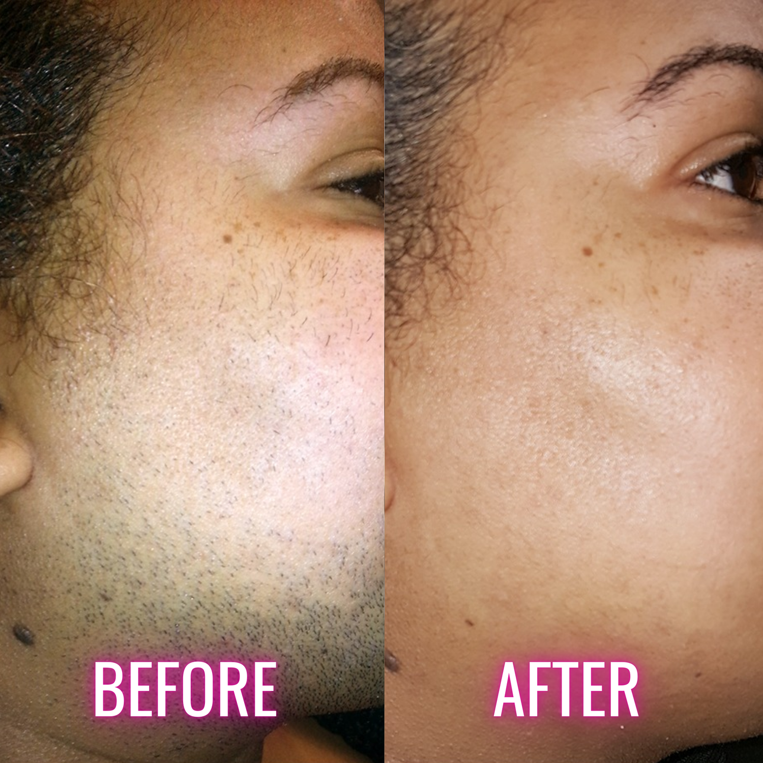 Facial areas that can be treated include upper lip, chin, cheeks, jawline, and neck. These areas can be targeted for a more defined, smooth look without worrying about regrowth.