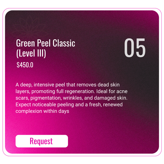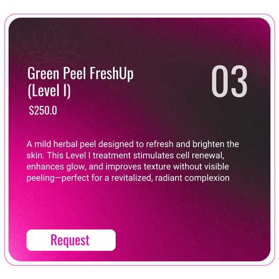 Green Herbal Peel is a plant-based skin resurfacing treatment that removes dead skin cells, stimulates collagen production, and promotes natural regeneration. It improves texture, reduces imperfections, and restores a radiant, youthful complexion.